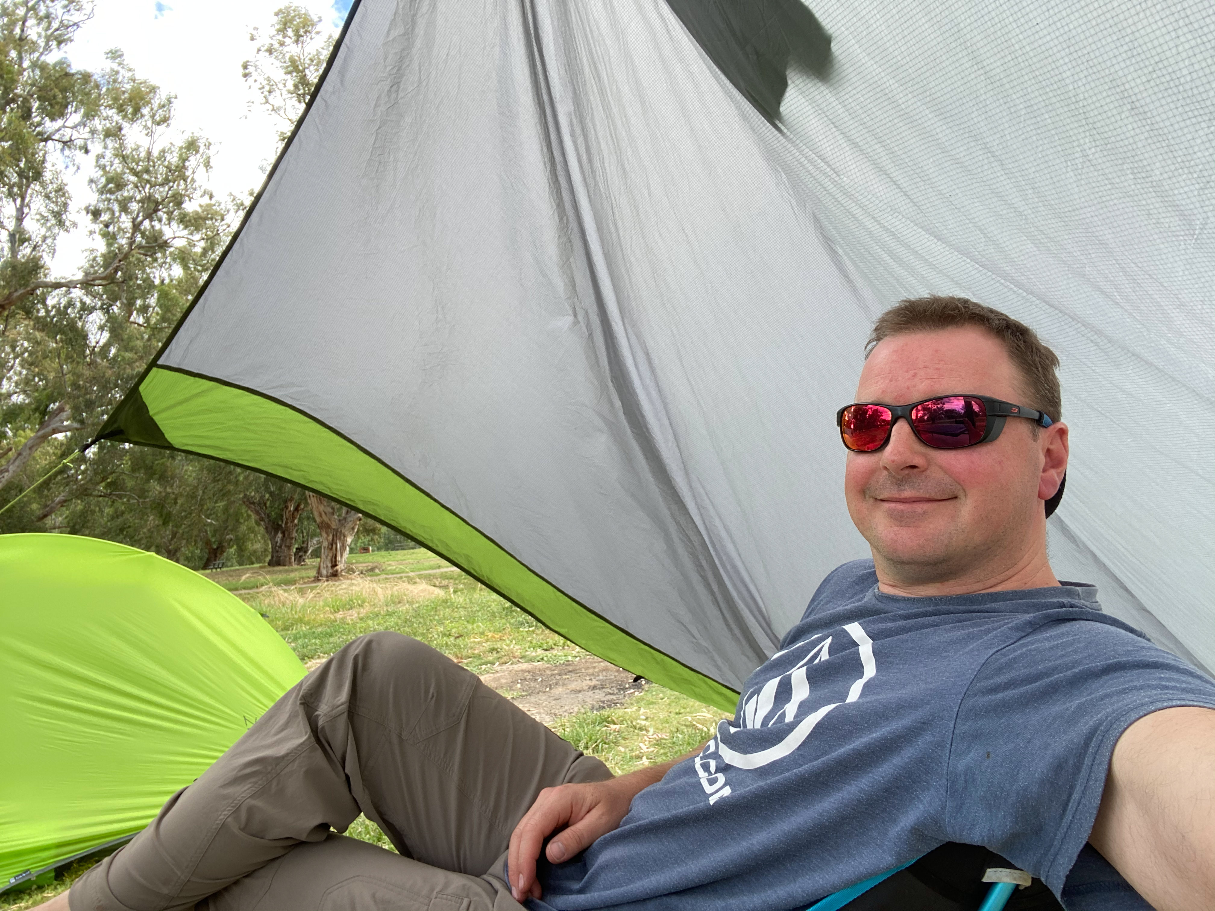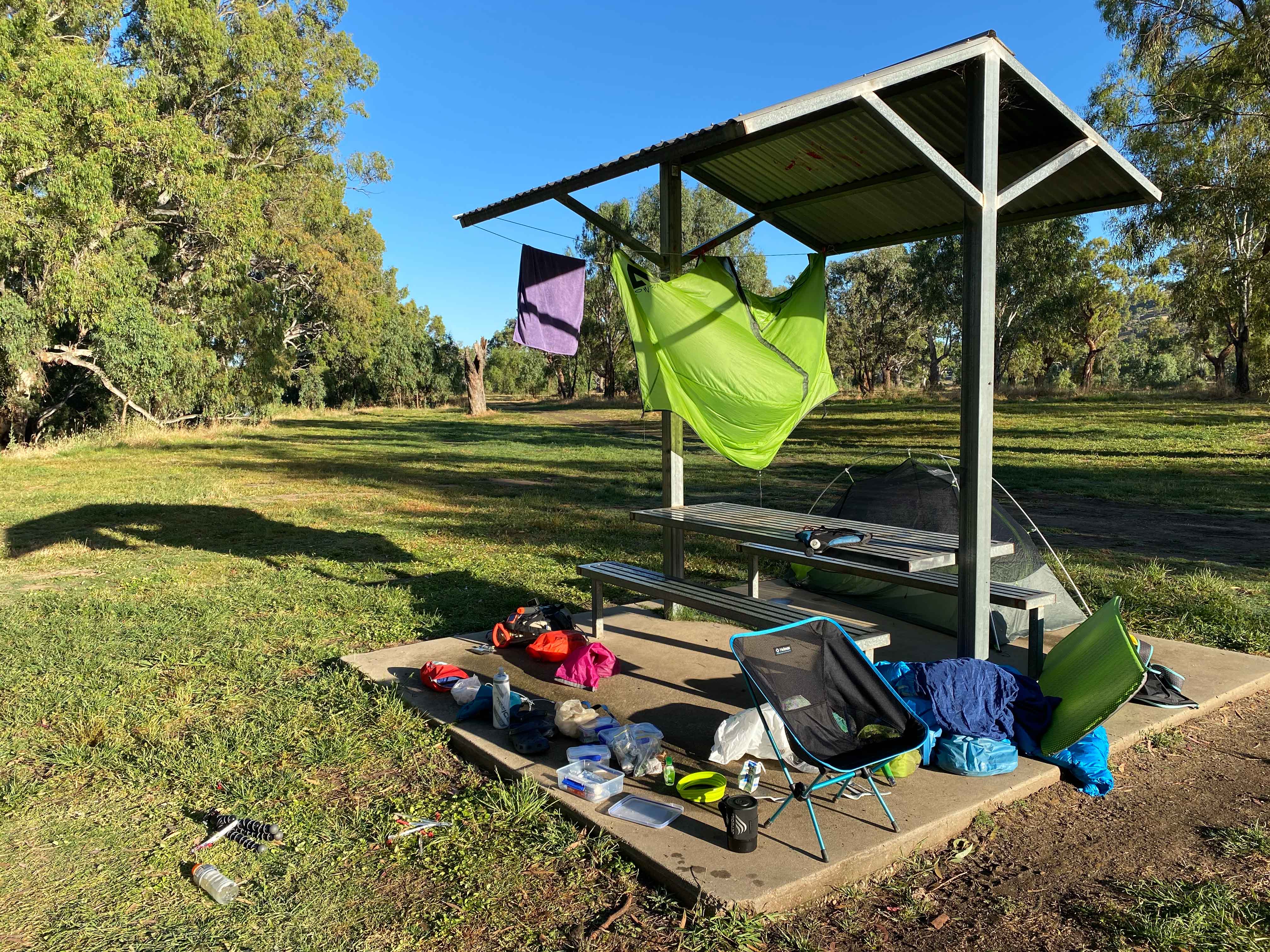 I passed the first campsite in the guide (and where Scott and I spent our first night in 2013), called Limekilns Reserve, at around 10am. I was glad I had planned to push on to Wantabadgery. A few hours later (at around 2pm) I reached the Sandy Beach campsite at Wantabadgery and was delighted to find a nice spot on the edge of the river including a table and shelter. There were a few caravans scattered around the area, however it is a huge campsite (with a couple of relatively clean drop toilets), so I was able to keep to myself.