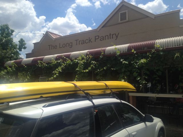 With the kayak lashed to the roof of dad’s car, we headed across the road the Long Track Pantry and I scoffed down my lunch in record speed. Apparently I was somewhat hungry.