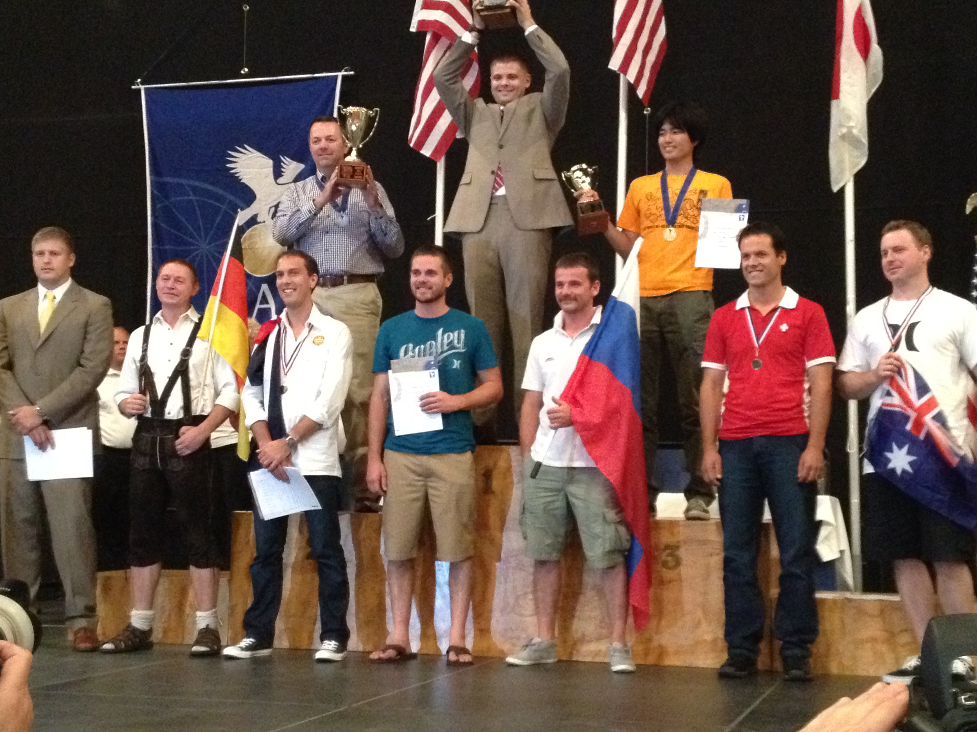 On Saturday afternoon was the closing ceremony. Unfortunately Matt, who never imagined he would do so well, had to head over to Chicago before it started, so I had to get up on to stage with the top 10 as his proxy. So we managed to get to wave the Australian flag for the first time since 2004.