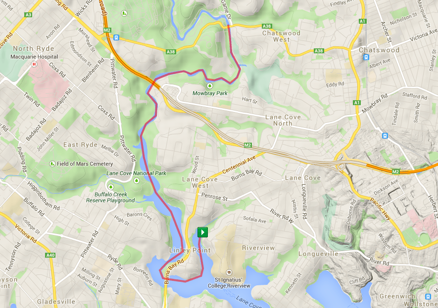 Today I decided that I was going to test out my elbow and do a longer paddle than I have done recently. I started at Burns Bay Reserve in Lane Cove and paddled 7.5km up the Lane Cove River to the entrance of the Lane Cove National Park in Ryde.