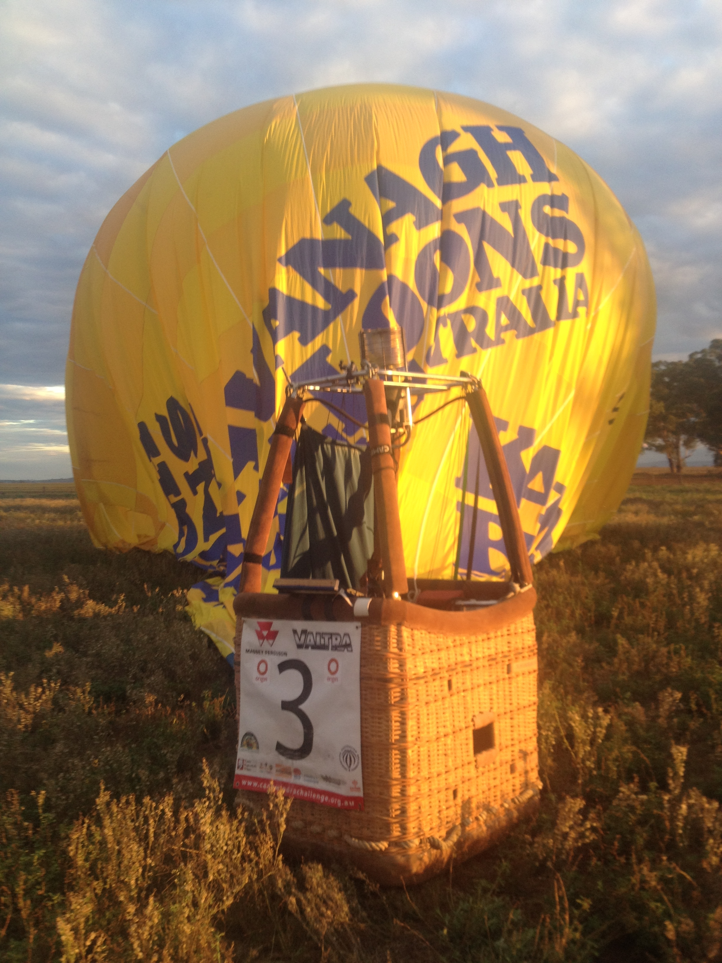 The first morning I flew Carolyn and James. After an eventful, windy launch (including a small hole getting burnt in one panel of the balloon) from the Galong cemetery, we it ended up being a great flight.